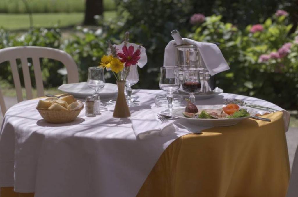 A la belle saison, vous pourrez venir déjeuner, vous détendre et profiter d'un instant de calme au milieu de la nature, bercés par le chant des cigales dans notre parc de 2 hectares et demi.